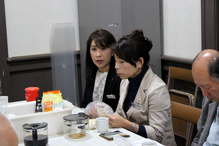 女性の経営者が今、増えているのが津山の特長です。ランチ懇親会なども行い、女性経営者同士、仲がいいです。「一緒にやろう!」をモットーにしていますので、女性経営者の方で、一緒に経営の悩みや相談を打ち明けられる仲間を探している方、ぜひ津山市準倫理法人会へお越しください。活力朝礼の見学も一緒に行ったりしています。 また、講師の方も女性経営者として、こんな女性になりたい!そんなステキな女性経営者を岡山県内だけでなく全国からお呼びさせていただいています。 モーニングセミナーでは緊張感を。その分朝食会では、思いっきり緩んでリラックスして楽しんでもらうようにしています。 毎回、半分以上の方が朝食会に参加してくださり、講話者を囲んで和やかな雰囲気の中で学んだことをみんなで感想をし合いながら和やかな時間を過ごしています。ボリュームたっぷりのサンドイッチ、特大クロワッサン、そして カフェオーナー入れたてのコーヒーは香り高く大変好評です。モーニングセミナーの魅力