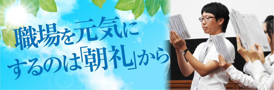 仕事への意欲を高め「今日一日がんばろう!」と元気!を引き出す朝礼を倫理法人会では活力朝礼と呼んでいます。働く人の活力がわくことを何より重視しています。基本動作の習得、職場の教養を活用するところに特色があります。